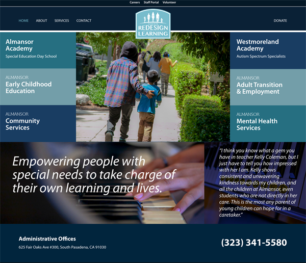 Tasked with designing a new brand identity for South Pasadena’s largest and oldest employer, we came up with two winning logos. Nobody won that battle and a third design was created. You can see the new logo on the beautiful website we developed for them. The dynamic website pages are filled with brand images that speak volumes to their mission.