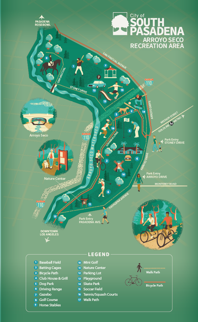 We traversed the majestic Arroyo Seco with a team from Parks & Rec to develop this custom illustrated map of the historic grounds — featuring the new bicycle path. Pick one up at most park trailheads.