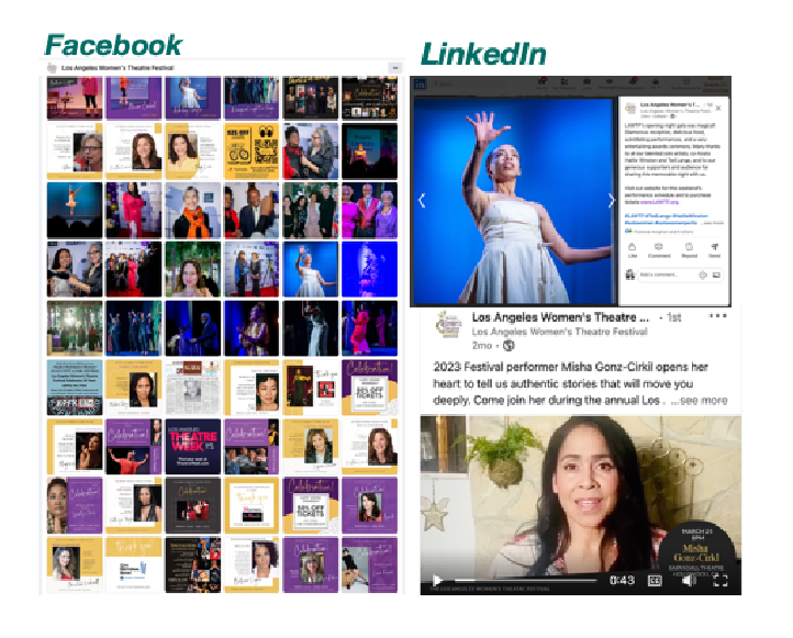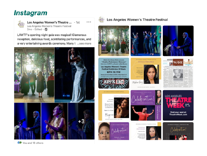 Los Angeles Women’s Theatre Festival had an exciting return to ‘live in-person’ performances. We jumped into helm Partnerships and coordinated Social Media, Group Sales, Video Production, and Photo Editing, promoting more than 20 solo performing artists over a jam-packed week, which included an educational component.